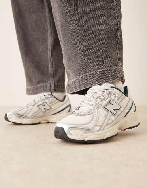 New Balance – 740 – Vita och mörkgröna, metalliska sneakers i unisex-modell