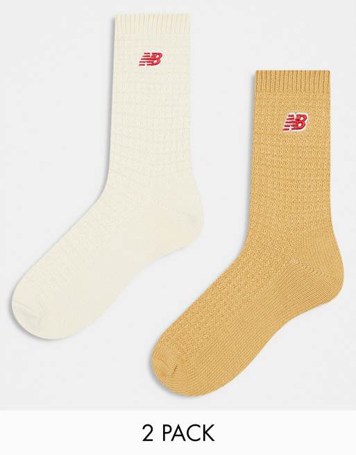 New Balance – Bruna och beige halvhöga strumpor med våffelstruktur och broderi, 2 pack