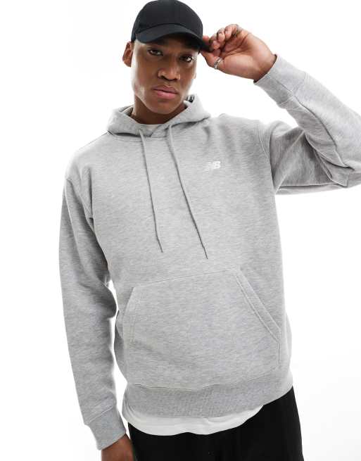New Balance – Grå huvtröja i borstat tyg med liten logga