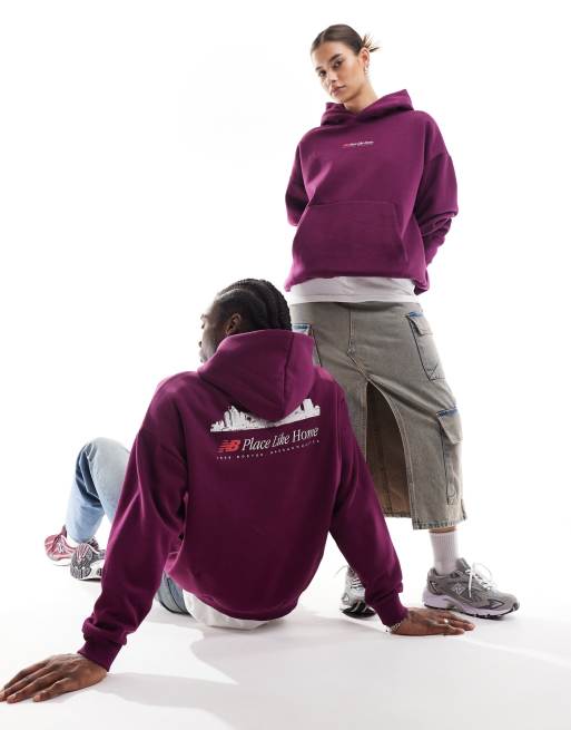 New Balance – Home Again – Vinröd huvtröja i unisex-modell – Endast hos ASOS