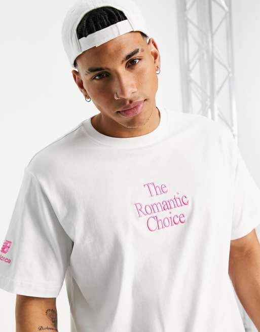 New Balance – Vit och rosa t-shirt med "romantic choice"-tryck, endast hos ASOS
