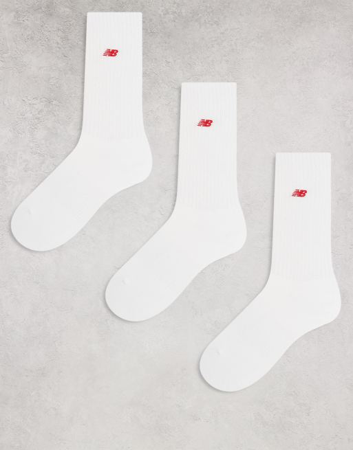 New Balance – Vita, ribbade strumpor med röd logga, 3-pack