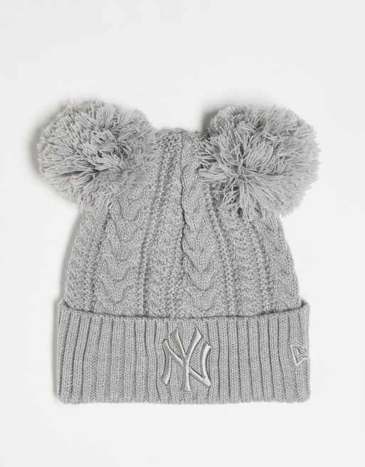 New Era – NY – Grå, flätstickad mössa med två tofsar