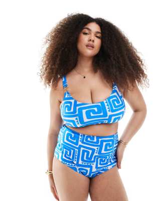 New Look Curve – Blå, virvelmönstrad bikiniöverdel med djup ringning