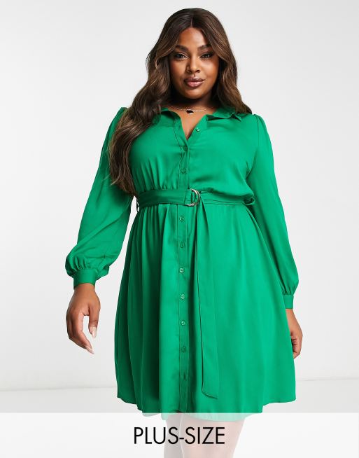 New Look Curve – Grön miniklänning i skjortmodell med skärp