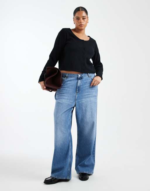 New Look Curve – Ljusblå slouchy jeans med vida ben