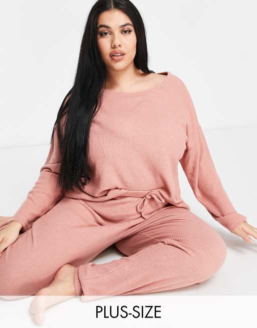 New Look Curve – Ljusrosa ribbad topp i off shoulder-modell