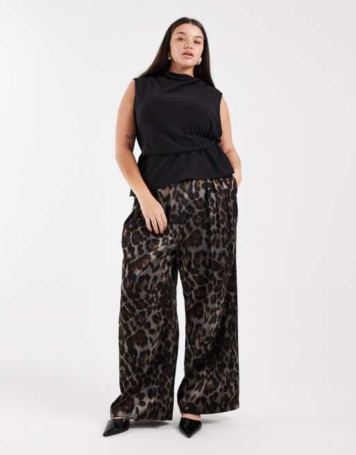 New Look Curve – Svarta, djurmönstrade byxor med vida ben