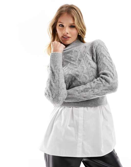 New Look – 2-i-1 – Ljusgrå flätstickad tröja