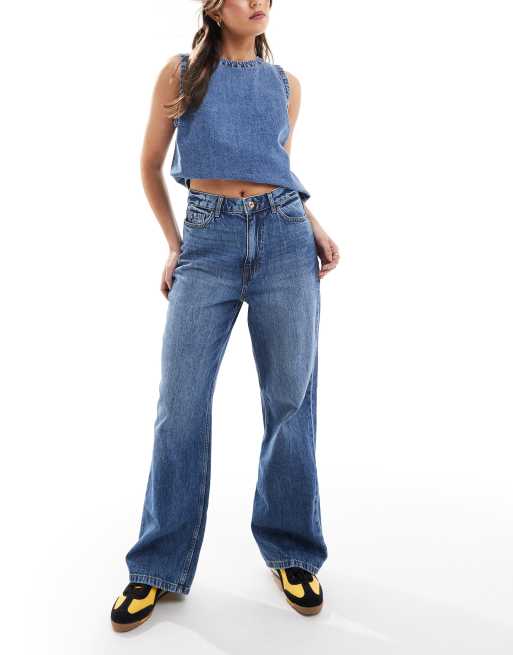 New Look – Adalae – Mellanblå jeans med vida ben