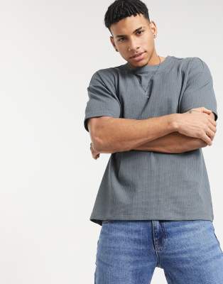 New Look – Blå t-shirt i bomull med våffeltextur - MBLUE