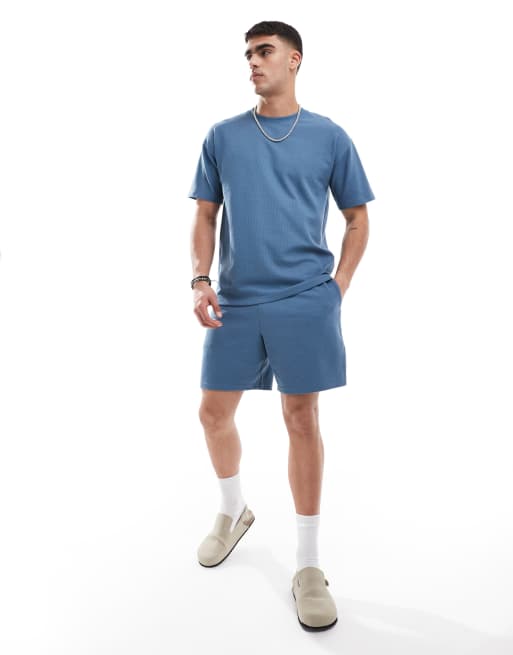 New Look – Blå, våffelstrukturerade jersey-shorts, del av set