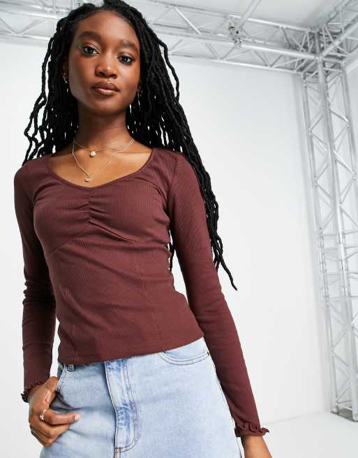 New Look – Chokladbrun korsettopp med ryschad byst