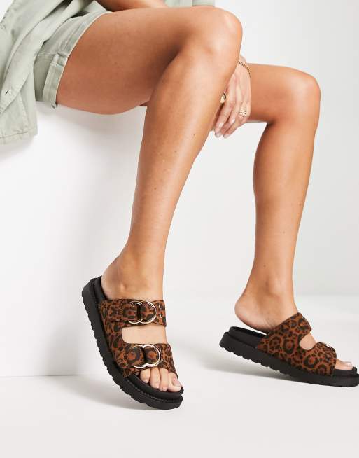 New Look – Djurmönstrade sandaler med dubbla spännen