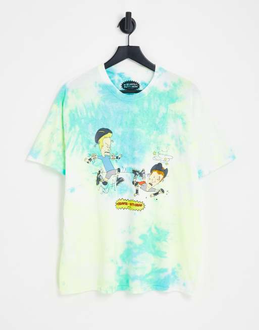New Look – Flerfärgad, batikfärgad t-shirt med Beavis & Butthead-tryck