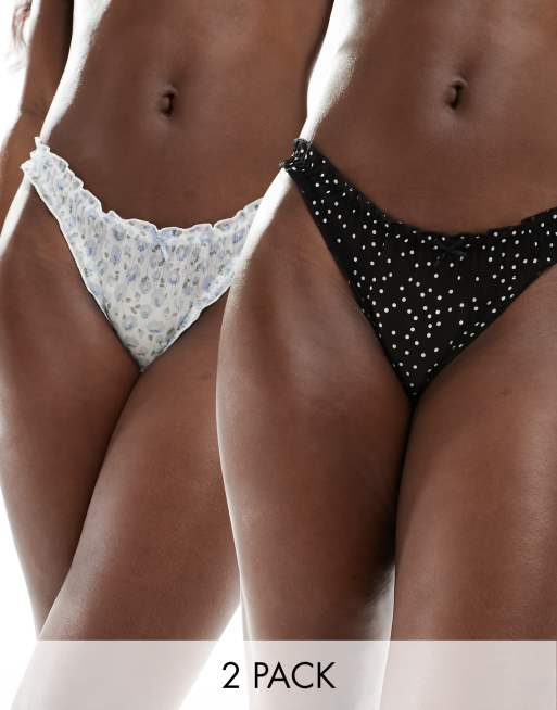 New Look – Flerfärgade stringtrosor med uddkant, 2-pack