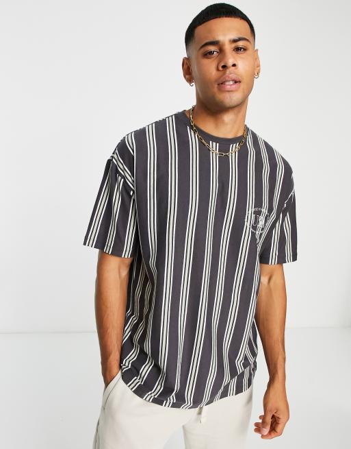 New Look – Grå t-shirt med vertikala ränder och US-broderi