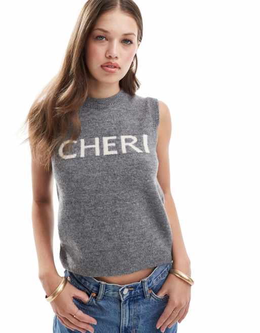 New Look – Grått stickat linne med Cheri-text