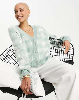 New Look – Grön ginghamrutig kofta med strassknappar