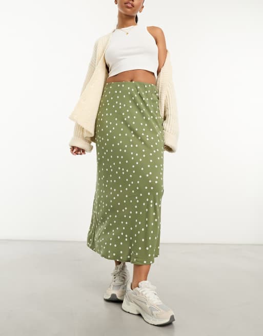 New Look – Grön, prickig midikjol med sidoslits