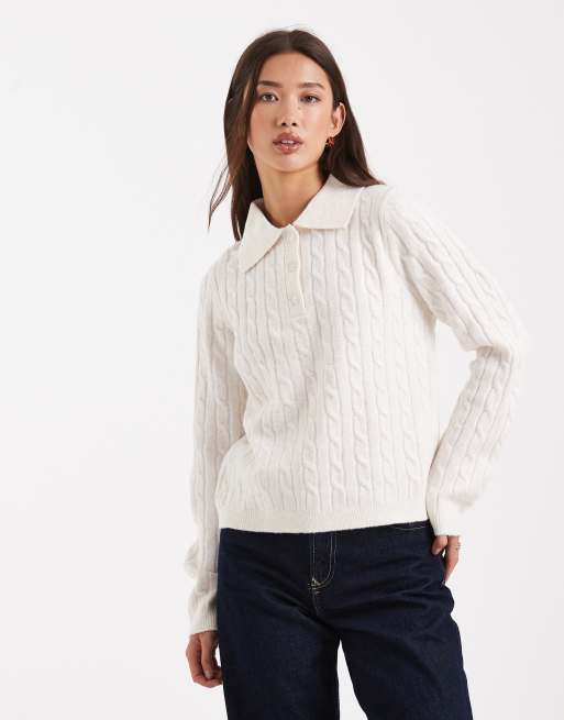 New Look – Krämvit, flätstickad pikétröja