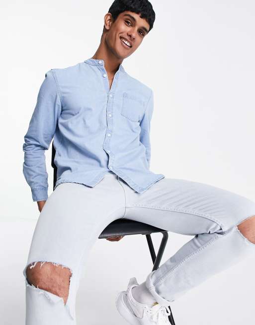 New Look – Ljusblå jeansskjorta med murarkrage