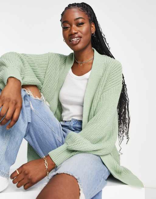 New Look – Ljusgrön, stickad kofta med ballongärmar