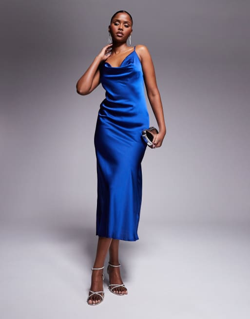 New Look – Mellanblå midiklänning med draperad ringning i satin
