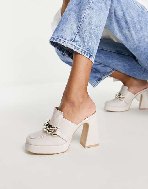 New Look – Naturvita loafers med öppen häl, grov kedja och klackar