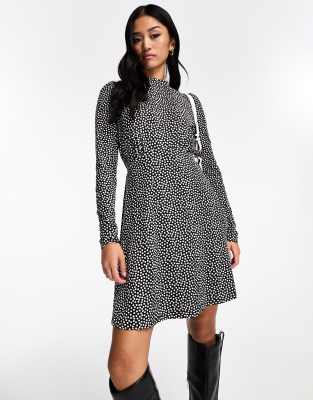 New Look – Prickig, långärmad miniklänning med hög ringning