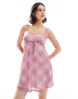 New Look – Ros, rutig miniklänning i mesh med rosett