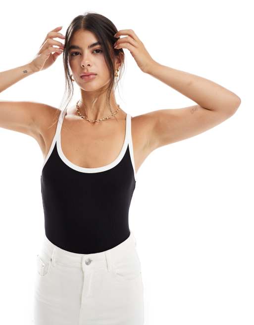 New Look – Svart body i linnestil med kontrasterande, djup ringning