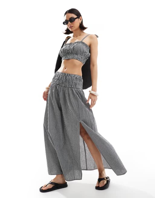 New Look – Svart, ginghamrutig, smockad midikjol, del av set