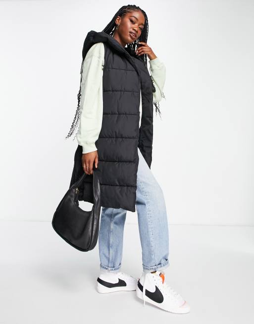 New Look – Svart kviltad väst i lång modell