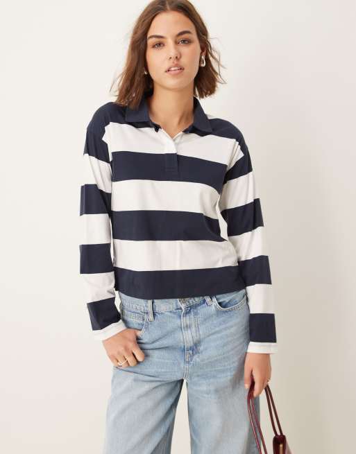 New Look – Svart och vitrandig topp med krage