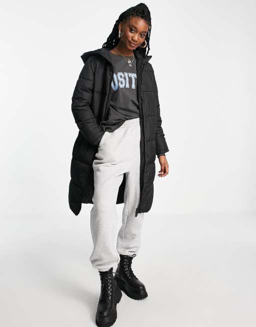 New Look – Svart pufferjacka i lång modell