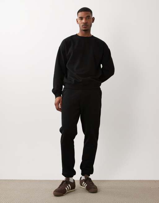 New Look – Svart set med mjukisbyxor och sweatshirt i oversized fit