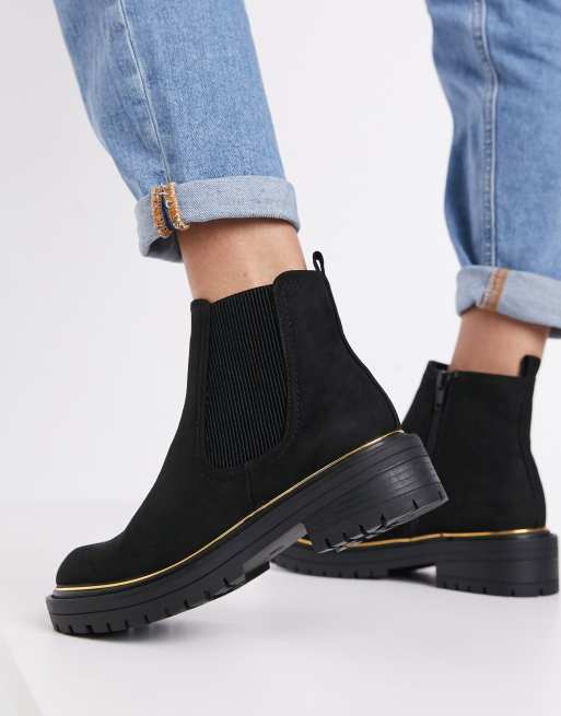 New Look – Svarta grova chelseaboots med detalj