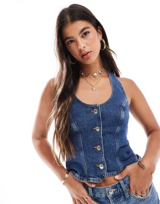 New Look – Topp i denim med halterneck