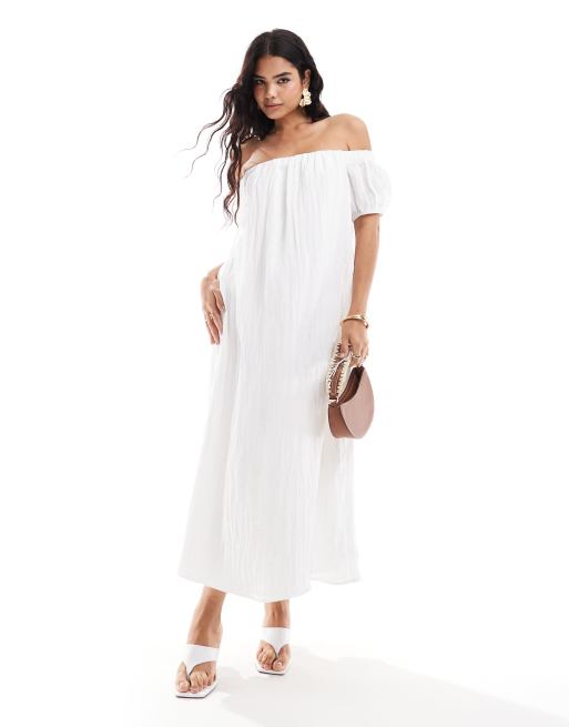 New Look – Vit, krinklad maxiklänning med bardotringning