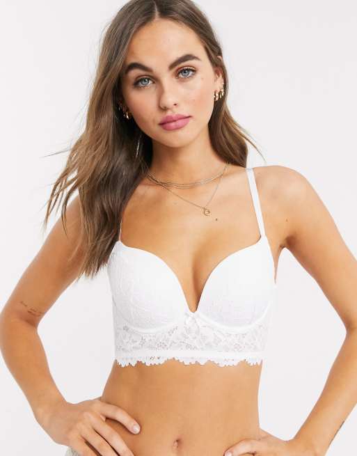 New Look – Vit push up-behå i longline-modell med spets