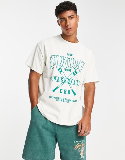 New Look – Vit t-shirt med Sunday Baseball-tryck