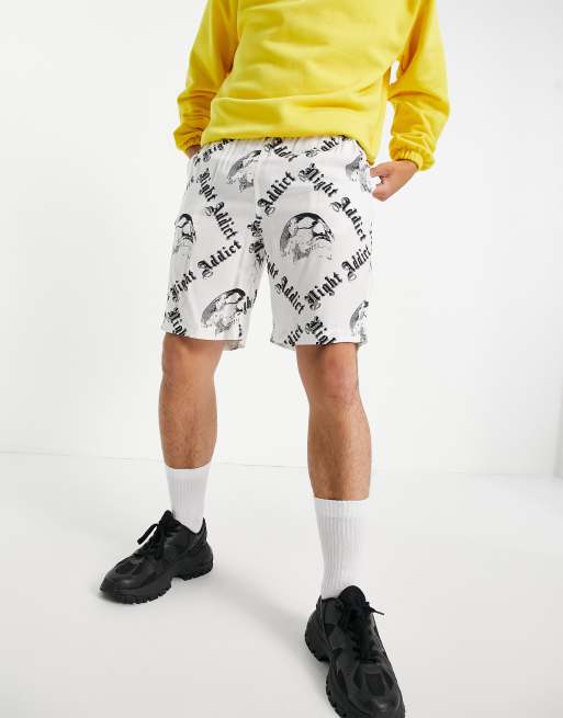 Night Addict – Vita jersey-shorts med retromönster, del av set