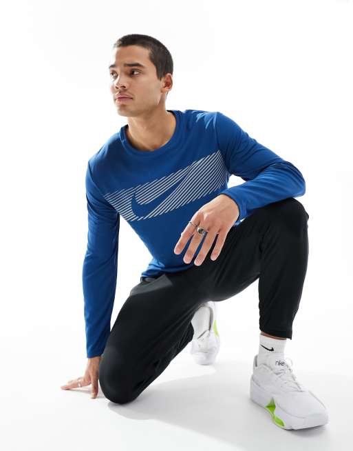 Nike Running – Flash Miler – Dri-FIT – Blå reflekterande träningstopp med långa ärmar