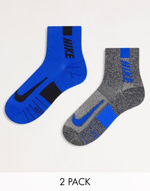 Nike Running – Multiplier – Grå och blå ankelstrumpor, 2-pack