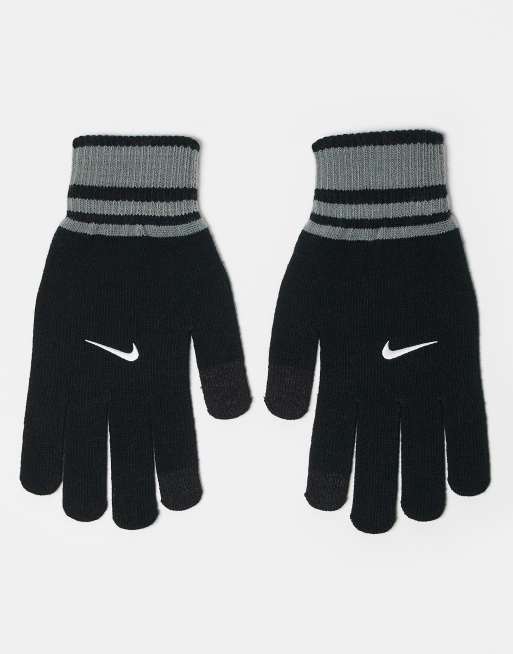 Nike – Svarta och grå, stickade handskar med pekskärmsteknik