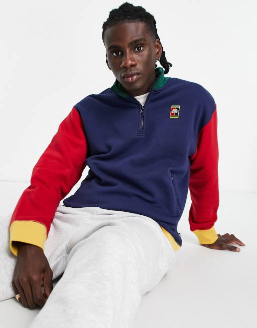 Nike SB – Court – Marinblå blockfärgad sweatshirt med logga och kort dragkedja vid halsen