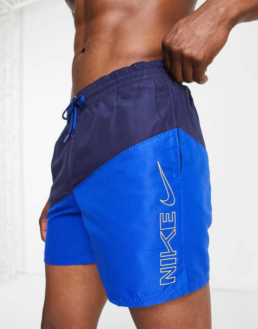 Nike Swimming – Marinblå och blå badshorts på 5 tum med sned blockdesign