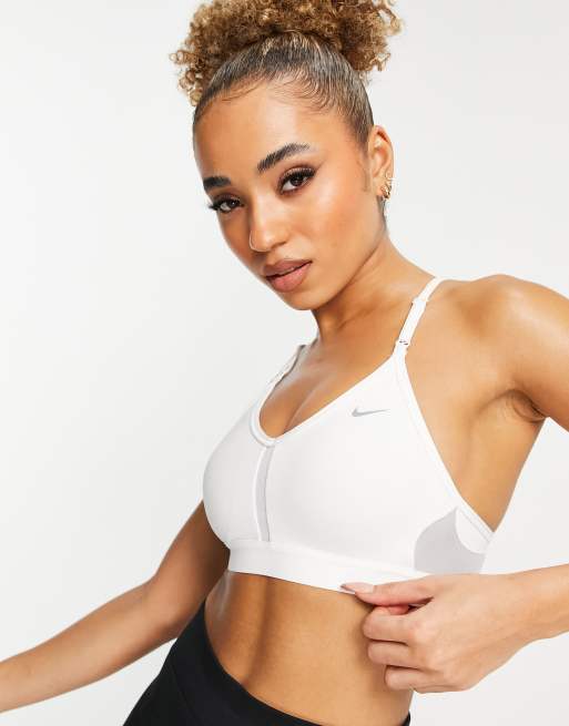 Nike Training – Dri-FIT Indy – Vit, vadderad sportbehå med lätt stöd och v-ringning