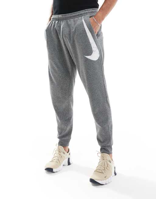 Nike Training – Grå, avsmalnande joggingbyxor med swoosh-tryck